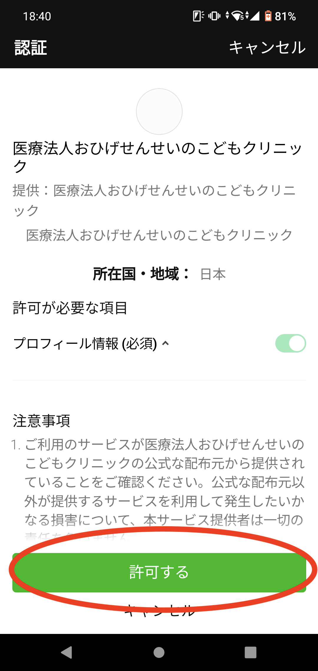 3)初回だけ認証画面が出ます。(2回目からは出ません)《許可する》
