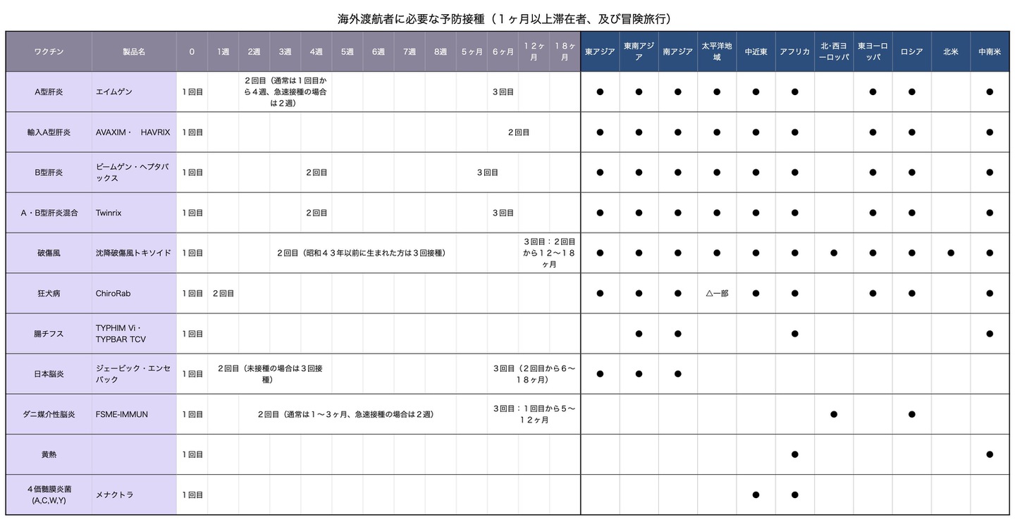 文字が見にくい場合、海外渡航のためのワクチンに関する説明はこちらから大きいサイズでご覧いただけます