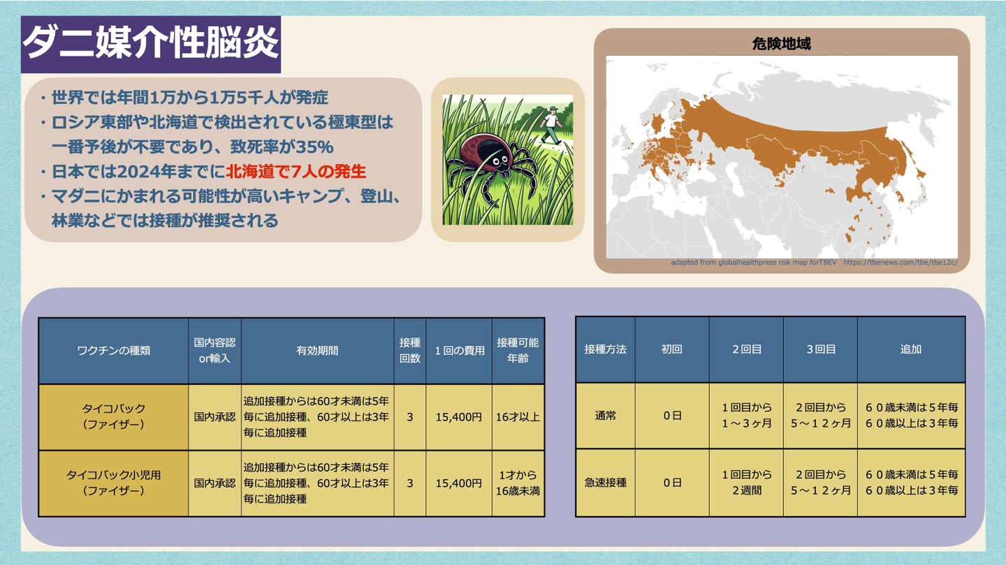 また、2024年(令和6年)には北海道内で更に2名のダニ媒介脳炎の発症が確認されております。