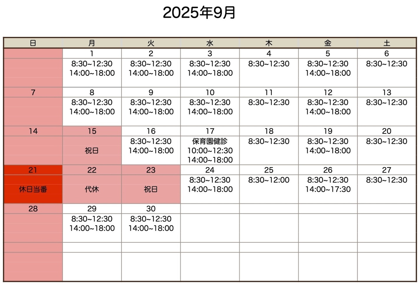 - 9月26日金曜日は院長学会出席のため17時半までの診療となります。