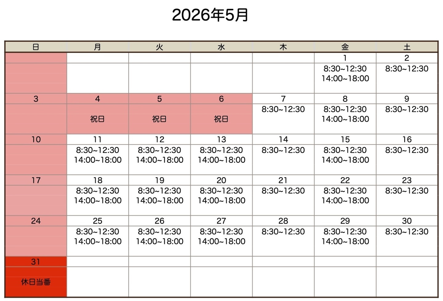4月13日月曜日は休日当番の代休となります。 5月31日日曜日は札幌市小児科休日当番となります。 受付時間は9時から17時までとなります。 休日当番は救急診療となりますので、行える検査、薬の処方日数も制限があります。(処方は基本は1日、最大で3日分まで、可能な検査はインフルエンザ、溶連菌、COVID19、アデノウイルス、血液検査までとなり、札幌市休日急病センターと同内容となります) 救急ではない通常の診療に関しましては平日での受診をお願い致します。 6月1日月曜日は休日当番の代休となります。